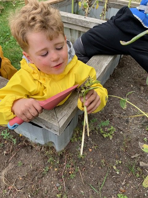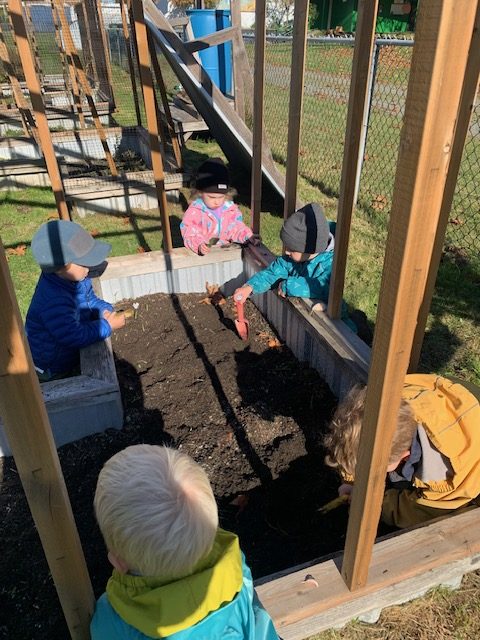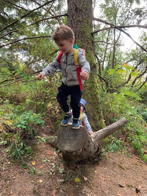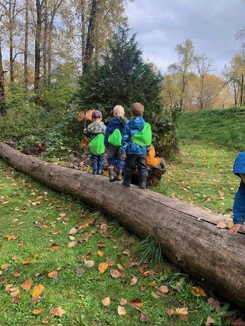 The children have the opportunity to develop physically, cognitively, socially and linguistically during their time in nature. In the outdoor curriculum children are able to develop a deep relationship with their natural surroundings, to explore the edges of their personal physical abilities and to gain confidence in themselves and in others. The children using place-based experiences with an inquiry focus,create hands on investigations of their world within a naturally unfolding curriculum. Eco friendly gardening and food sustainability teachings intertwine the play immersed days.Positive social skills are modelled with an emphasis on ensuring respect for self and others, equal rights and opportunities for group members, and acceptance of all are differences. The teacher is there and present. The teachers is directly having a conversation, interactions and learning experiences with the children.Their interactions are genuine and meaningful.It becomes a natural community of learning together in a deep connected experience.